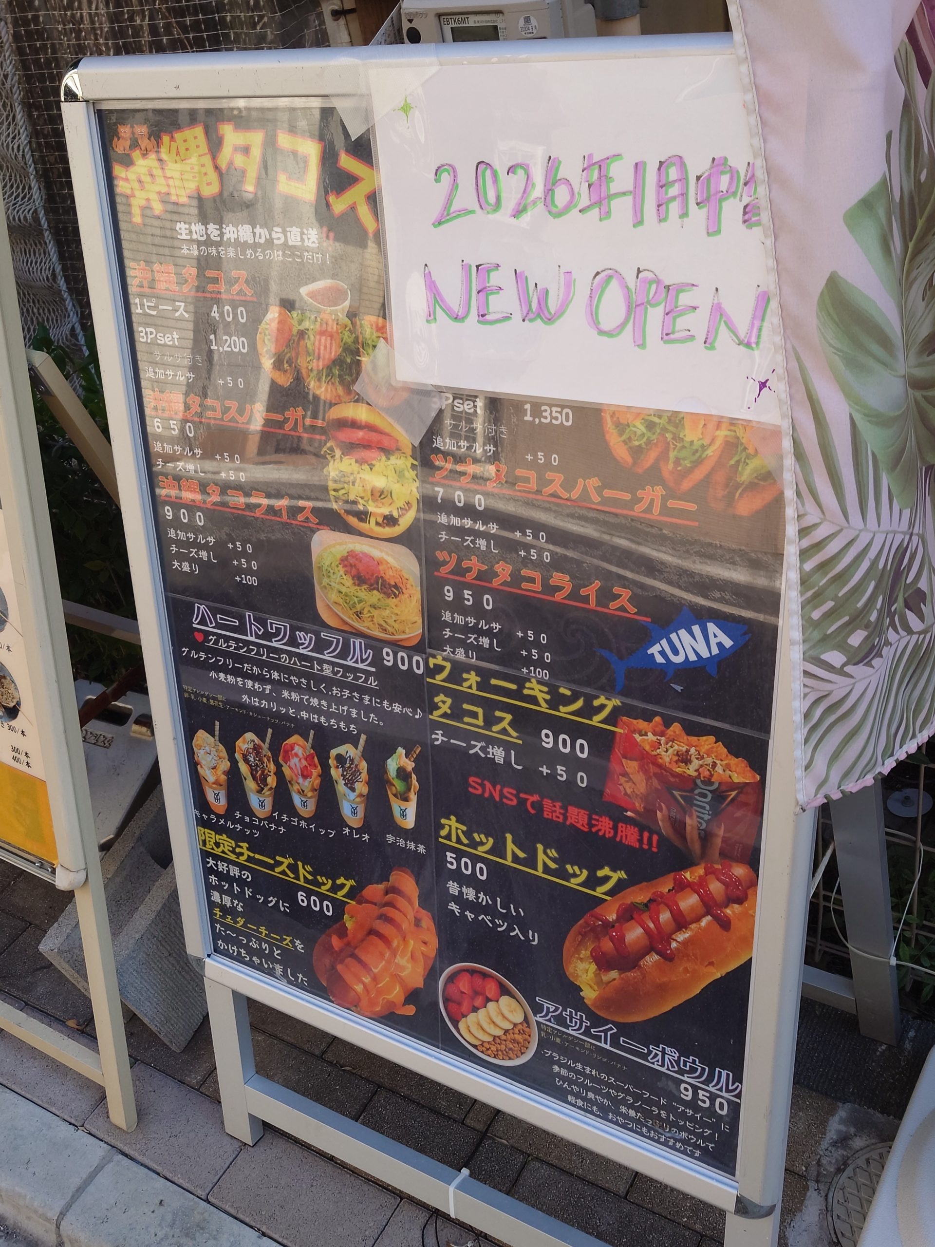 沖縄タコス、タコライス、ハンバーガーやワッフルなどを販売するお店のようです。