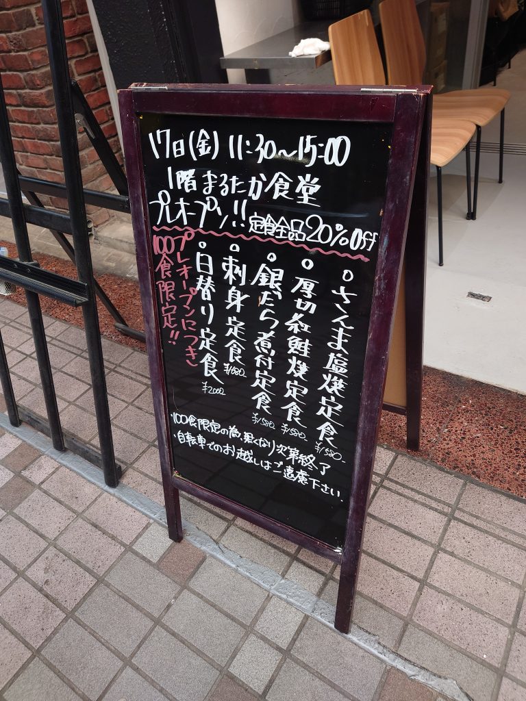 鮮魚などを販売していた「丸高水産」がリニューアルし、新たに飲食店として再オープンしました。スタッフの方は以前の店舗から変わっていないようで、常連とおぼしきお客さんたちがお店の方とお話されていました。