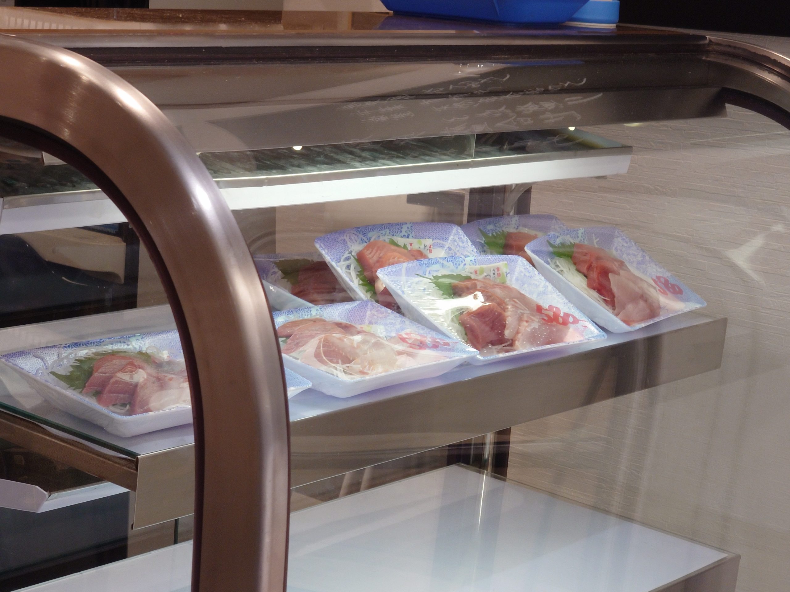 リニューアルで飲食店がメインに変わっていますが、店頭の冷蔵ケースではお刺身も販売されていました。1人前という感じのボリュームで580円(撮影時点の価格)の詰め合わせです。近隣にはおいしい刺身を扱う鮮魚店がこの数年で増えましたが、こうした複数種類入った盛り合わせ的な商品はあまり見かけないので良いなと思いました。